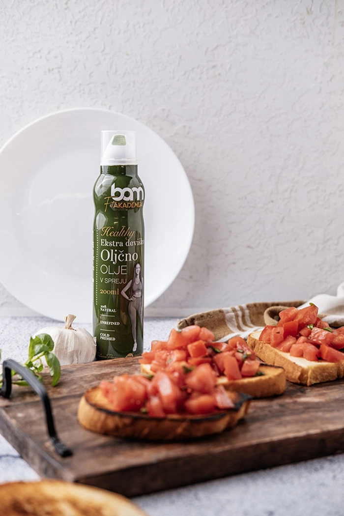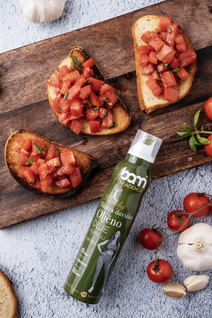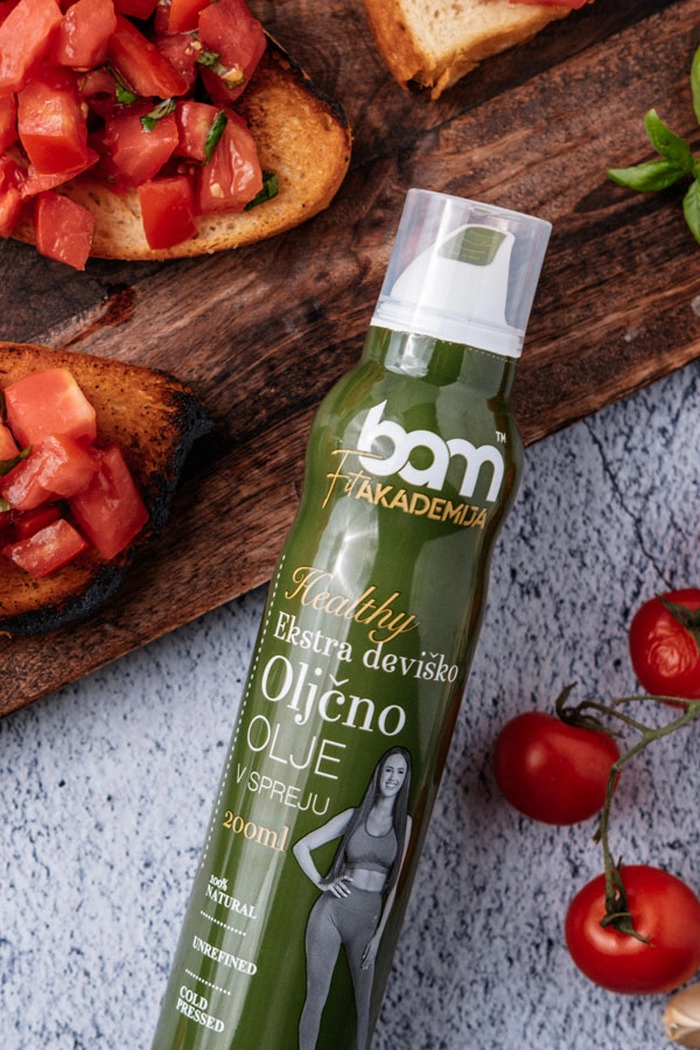 El Aceite de Oliva Virgen Extra en Spray BAM (200 ml) es de un delicado color verde y su aroma te transporta al verano, a los olivares y a la hierba recién cortada. Con un agradable sabor ligeramente amargo a aceitunas, este aceite de oliva casero evoca la jugosidad y autenticidad de la Istria eslovena. Al aceite de oliva no se le llama el oro líquido gratuito del Mediterráneo. Es fácilmente digerible, reduce los niveles de colesterol y es rico en antioxidantes, por lo que se considera una grasa saludable.