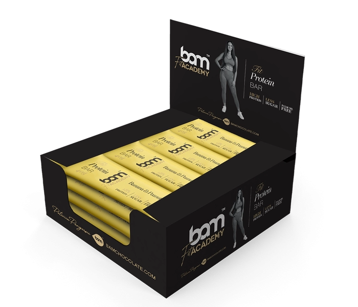 La colección BAM fit ofrece la combinación perfecta de valor nutricional y sabor premium para quienes desean mantener un estilo de vida activo sin concesiones. Entre estos excepcionales productos destaca la Barrita Proteica BAM Plátano & Cacahuete, que combina la dulzura del plátano con la riqueza del cacahuete y el trigo sarraceno, sin azúcares añadidos.