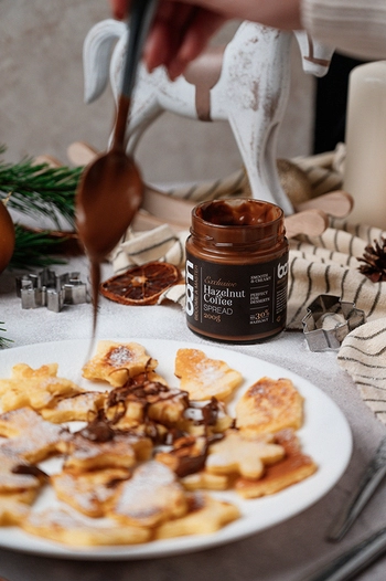 Lapasta para untar de café y avellanas BAM (200 g) contiene al menos un 30% de excelentes avellanas tostadas. La combinación de pasta de avellana, café aromático y leche cremosa crea una excelente crema para untar que puede incluirse inmediatamente en nuestro menú. Puede utilizarse para condimentar desayunos, meriendas y cenas, y también funciona muy bien como complemento de postres. No contiene aceite de palma y no contiene gluten. La pasta para untar de café y avellanas BAM es ideal para preparar cremas y mousses de gran calidad. Puede añadirse como relleno a croissants, tartas y otros pasteles, o simplemente puede untarse en pan, tortitas o añadirse a helados y frutas.