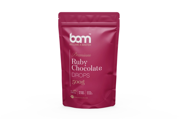 BAM Ruby Chocolate (500 g) ofrece una experiencia de chocolate moderna con un color rosa natural y un sabor agridulce característico. Se elabora a partir de un tipo especial de haba de cacao, sin utilizar aditivos artificiales. Es adecuado para todo tipo de productos de confitería en los que se desee acentuar el sabor y el aspecto. El producto no contiene gluten.