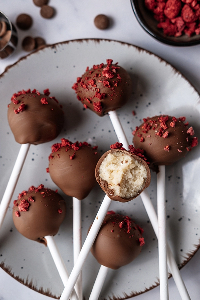 Atractivos y sabrosos cakepopsi sin hornear.