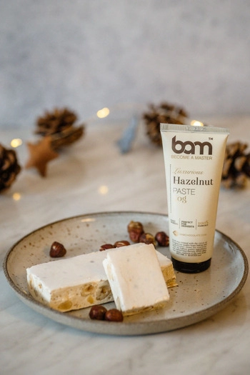 Envasada en un práctico tubo que permite una fácil dosificación y preserva su frescura, la Pasta de Avellanas BAM es un complemento indispensable para una gran variedad de recetas, desde postres hasta obras maestras de panadería.