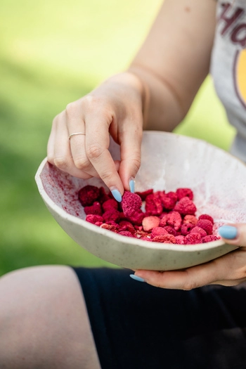 El set de decoración BAMbastic deleita con una decoración de postres indispensable que siempre impresiona. Las frambuesas liofilizadas BAM y las fresas liofilizadas BAM le esperan en el paquete. Las piezas de fruta de vivos colores son el acompañamiento perfecto para una tarta de chocolate recién hecha o magdalenas recién horneadas. El paquete también incluye malvaviscos de azúcar azules y blancos BAM y malvaviscos de azúcar clásicos BAM en rosa, crema y blanco. Los mini malvaviscos BAM son el acompañamiento perfecto para chocolates calientes y fondues de chocolate para los más pequeños, a quienes seguro que les encantarán los malvaviscos. Los mini malvaviscos también pueden ser la decoración perfecta para su tarta.