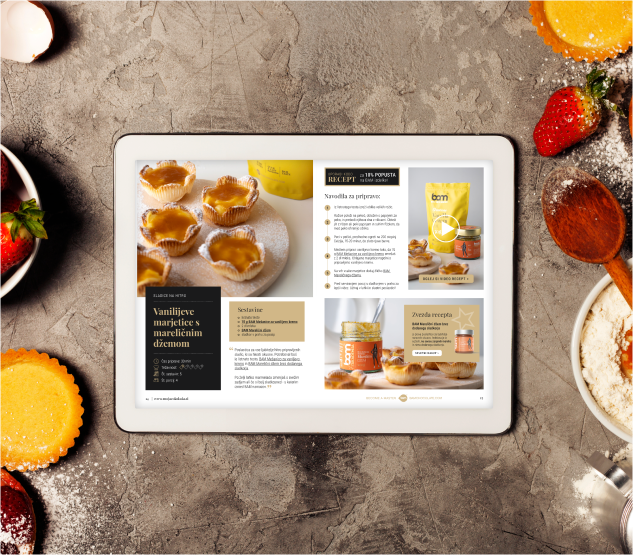 Cada receta se describe en detalle, desde los ingredientes hasta el proceso de preparación, para que hornear sea sencillo y divertido. La mayoría de las recetas incluyen enlaces interactivos a recetas en vídeo que le guiarán paso a paso hasta conseguir el postre perfecto. Las estrellas de las recetas son, por supuesto, los productos BAM de primera calidad que ponen la guinda a cada bocado. Para que su creación sea aún más sencilla, puede pedir fácilmente la mayoría de los ingredientes dulces a través de nuestro sitio web. ¡Y con un descuento especial del 10%!
