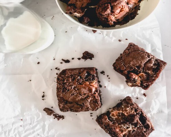 Precalentar el horno a 180 °C y forrar una bandeja de 23 x 23 x 5 cm con papel de horno.