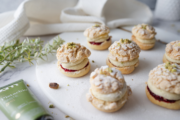BAM Hojaldres de crema con crema de pistacho y chocolate blanco