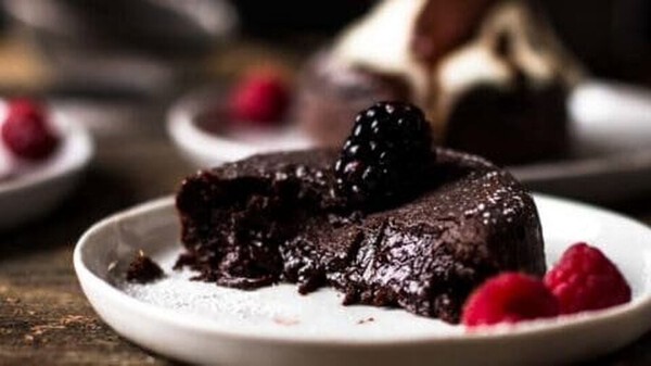 5 Enfriar los pasteles de chocolate durante unos 5 minutos. ¡Servir y disfrutar de un delicioso centro caliente, líquida y muy chocolate!