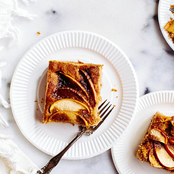 En un bol mediano, bata el aceite, el azúcar, el azúcar moreno, el puré de manzana, los huevos, la pasta de vainilla BAM y el zumo de naranja. Vierta los ingredientes húmedos en los ingredientes secos y revuelva hasta que se combinen. Añadir las manzanas troceadas. Vierta la masa uniformemente en el molde preparado. Hornear de 45 a 50 minutos. Los tiempos de horneado varían, así que preste atención. Pasados unos 30 minutos, cubrir ligeramente con papel de aluminio para evitar que se dore demasiado.