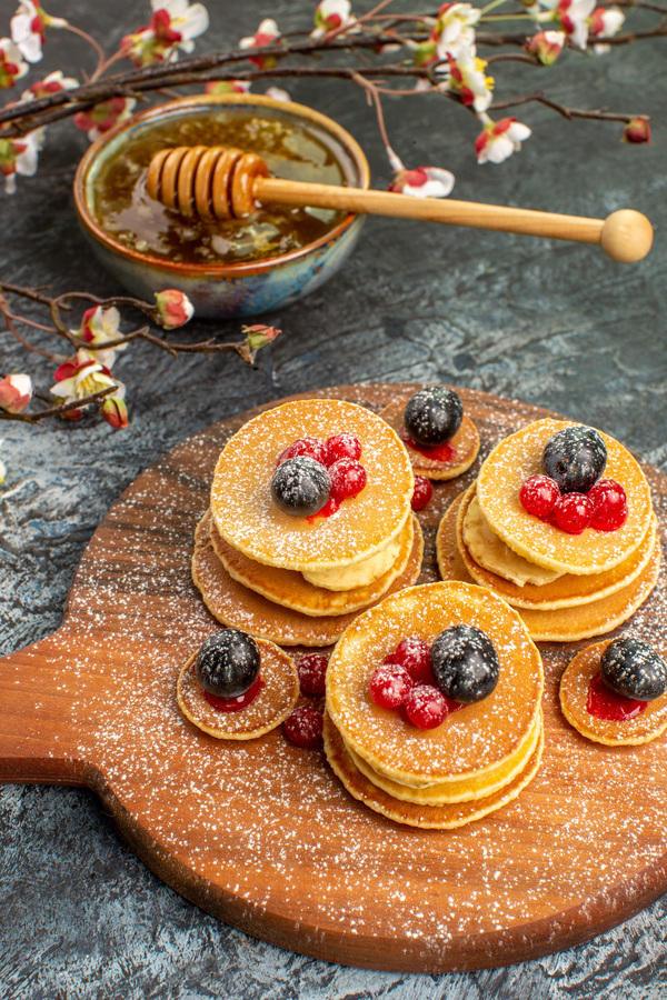 Cocer las tortitas de 2 a 3 minutos por cada lado o hasta que se doren. Sírvalas aún calientes y puede cubrirlas con sirope de arce, nata montada o fruta fresca.
